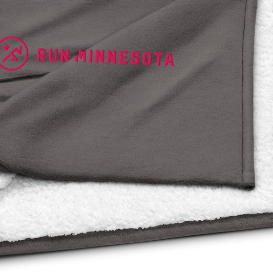 Run Minnesota Premium sherpa blanket - Heather Grey with Flamingo Pink Embroidery